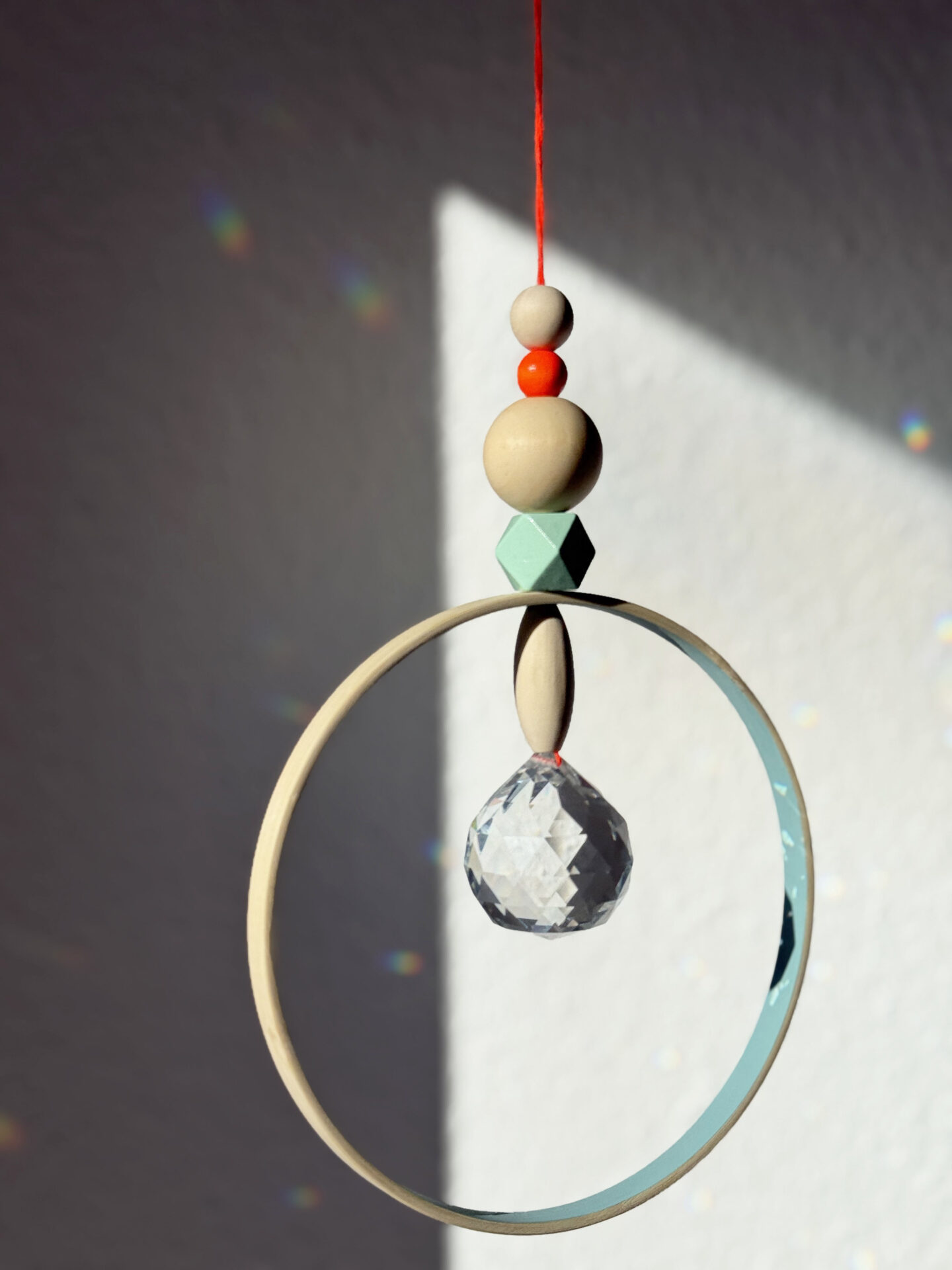 Hänge den Suncatcher ins Fenster, so dass er das Sonnenlicht einfängt und bunte Lichter in den Raum wirft. Er eignet sich für alle Räume und bringt viel Freude. Auch als Geschenk natürlich 🙂